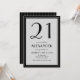 Celebrate turning twenty-one in sophisticated style with this black and light grey 21st birthday invitation for men or women. Designed with bold typography on a sleek minimalist layout, it blends modern elegance with timeless appeal. The back features clean black and grey stripes for a refined, polished finish. Perfect for an adult milestone birthday, formal dinner, or chic cocktail party, this customizable invite sets the tone for an unforgettable 21st celebration. Personalize with your event details for a stylish, gender-neutral design ideal for modern milestone birthday party.