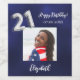 A navy blue background. The blue colour is uneven. Personalize and add a date, name and a photo. Age number written with a faux silver balloon style font.
