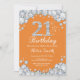 21st Birthday Orange and Silver Diamond Invitation