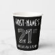 This elegant Roaring Twenties era inspired art deco look birthday themed paper cup design features a customizable name, plus the message “21ST BIRTHDAY PARTY!”. The number “21ST” has a fancy geometric lined appearance. Stylish paper cups like this might be fun to use at a birthday party in honour of somebody’s twenty-first birthday, or some other 21st event. [~Z0000658]