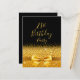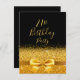 Elegant, classic, glamourous and feminine style party invitation. A faux gold coloured ribbon and bow with golden glitter and sparkle, a bit of bling and luxury for a birthday. Black background. With the text: 21st Birthday! on front