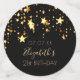 Girly and feminine confetti for your 21st birthday party table setting. A chic black background decorated with dripping stars in faux gold. Templates for a date and name/age 21. Golden coloured letters. Some confetti chips with name and date, others with the text: Happy Birthday written with a trendy handlettered script with swashes.