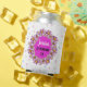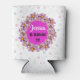 21st Birthday Celebration Can Cooler in pink, purple and gold with beautiful flower lei wreath. The words "Jessica Is Turning 21" in modern black & white text is completely customizable. So are the colours by using the edit menu.