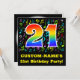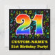 The front of this fun, vibrant, and colourful birthday party invitation design features a large number "21" with a rainbow spectrum gradient inspired pattern, along with a customizable name and the message "21st Birthday Party!". Part of the background features a fun pattern of various music notes and symbols having a variety of colours and sizes. The back features customized information/details about the event that the potential guests are being invited to. Joyful, customized birthday celebration invitation cards like this might be sent to potential guests of a celebration being held to celebrate a musician’s, a song composer’s, a singer’s, or somebody else’s twenty first birthday. [~Z0000427]