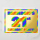 The front of this joyful twenty-first birthday party foil invitation card features a personalized name, a large number “21st”, the message “BIRTHDAY PARTY!”, and a border, all featuring a fun, multicolored, rainbow spectrum inspired gradient pattern. The back features personalized details about the event, such as the date, time, place/venue, and any other important information. Upbeat, vibrant, personalized invitations like these might be used to invite guests to a birthday gathering/party being held in celebration of somebody’s 21st birthday. [~Z0000593]