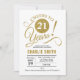 21st Birthday Party Invitation in faux glitter Gold and White. Cheers to 21 years! Elegant modern typography script style design.