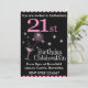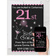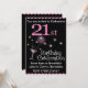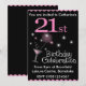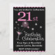 21st Birthday Party Invitation, pink and black with cocktail glass