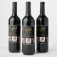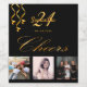 A bottle label for a 21st birthday party. Personalize and add 3 of your own photos, a name, age 21 and a date. Date of birth or the date of the party. Golden coloured letters. The word: Cheers, in faux gold written with a trendy hand lettered style script. Elegant, classic chic black background colour, decorated with faux gold party streamers.