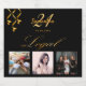 A bottle label for a 21st birthday party. Personalize and add 3 of your own photos, a name, age 21 and a date. Date of birth or the date of the party. Golden coloured letters. The word: Cheers, in faux gold written with a trendy hand lettered style script. Elegant, classic chic black background colour, decorated with faux gold party streamers.