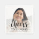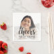 This custom 21st birthday napkin features the guest of honour's personalized photo, name, and birthday, along with the word "Cheers" in elegant black calligraphy script. A white screen helps make the text pop. A great way to celebrate someone who's turning 21!