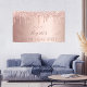 A banner for a girly and glamourous 21st birthday party. A rose gold background, with drips, paint drip look. The text: Tempate for a name written in dark rose gold with a large modern hand lettered style script. Templates for a date and age 21. Perfect both as a welcome banner or as party decor.