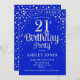 Elegant design in royal blue and faux glitter silver. Features stylish script font and confetti. Message me if you need custom age.