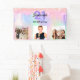 For a 21st birthday as a party welcome banner or wall decoration. A collage of 3 of your photos of herself friends, family, interests or pets. Personalize and add her name, age 21 and a date. Date of birth or the date of the birthday party. A trendy rainbow, holographic coloured background in purple, pink and mint green. Decorated with drips, paint dripping look . Purple and black coloured text.