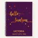 Elegant and modern for your notes or as a guestbook for a 21st birthday party. A Purple backdrop and faux gold text written with a trendy hand-lettered style script: hello twentyone. With golden dots as decor. Templates for name and date, golden letters. You can change the background colour to match your theme. Click customize and then "select a background colour" on your right.