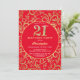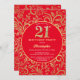 21st Birthday Red and Gold Floral Pattern Birthday Invitation. For further customization, please click the "Customize it" button and use our design tool to modify this template.