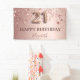 Elegant, classic, glamourous and girly for a 21st birthday party. Rose gold and blush pink, gradient background. Decorated with rose gold and pink stars. Personalize and add a name. With the text: Happy Birthday. The name is written with a modern dark rose coloured hand lettered style script. Number 21 is written with a balloon style font.