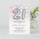 21st birthday party invitation. Elegant design in faux glitter silver with pastel pink and purple lights. Invite card features silver number 21 balloons and script font. Perfect for a stylish bday celebration. Message me if you need custom age.