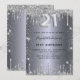 A modern, stylish and glamourous invitation for a 21st birthday party. A faux silver looking background, decorated with glitter dust. Personalize and add your name and party details. Number 21 is written with a balloon style font, script.