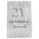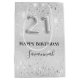 Elegant, classic, glamourous and girly for a 21st birthday party. A silver background. Decorated with glitter dust. Personalize and add a name. With the text: Happy Birthday. The name is written with a modern hand lettered style script. Number 21 is written with a balloon style font.