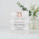 A modern, stylish and glamourous invitation for a 21st birthday party. A faux silver looking background, decorated with glitter dust. Personalize and add your name nad party details. Number 21 is written with a rose gold balloon style font, script.