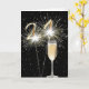 Party sparklers with gold confetti and white wine in stemware on black for 21st birthday.