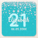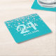 21st birthday teal green glitter diamonds name square paper coaster