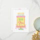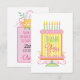 A tall yellow and pink birthday cake with flowers that says "thank you". The back of the card is a present with a thank you message and customized name.
