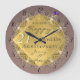 Great price for a very nice product. Arrived a day early - unheard of these days. The outside gold area has a little more orange tone to it than shown in the picture. Great packing so product can't get damaged. I used the same packing to forward the clock to my brother and sister-on-law for the 50th wedding anniversary. Printing was just as expected - lovely!