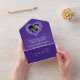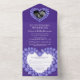 21st wedding anniversary party event with photo and detachable RSVP invitations can be sealed so no envelope is required. A beautiful iolite gemstone effect in a heart shape printed graphics wedding anniversary invitations, personalize with your own wedding anniversary party details, a photo of the happy couple. Make it easy for you and your guests to send as no envelope is required simply handwrite on your sealed invitations and your guests can reply with the detachable rsvp and affixing a stamp for quick and easy guest responses. The twenty-first wedding anniversary is associated with the gemstone iolite and the heart symbolizes love. Other matching items are available. Graphics and design by Sarah Trett for www.mylittleeden.com and www.mylittleedenweddings.com