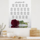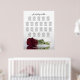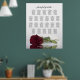 This elegant 22 table wedding seating chart features a beautiful photo of a single burgundy, maroon, or wine-red coloured rose reflecting in water with waves and ripples. The title reads "please find your table" in lacy script calligraphy. There is space for the couples' names and wedding date. This chart has table assignments for 220 guests 10 people per table.