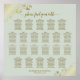 This simple yet elegant wedding seating chart contains space for 220 names at 22 tables with the traditional 10 seats per table. The sage green and gold design features a gold script calligraphy title, and golden faux foil lacy frills in the corners. Wonderful way to help your guests find their tables while adding class, elegance, and style to your wedding reception.