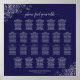 Ce tableau simple mais élégant de sièges de mariage contient de l'espace pour 220 noms à 22 tables avec le traditionnel 10 sièges par table. Le design bleu marine présente un titre de calligraphie de script gris pâle, et des plis de faux feuille d'argent dans les coins. Une façon merveilleuse d'aider vos invités à trouver leurs tables tout en ajoutant classe, élégance et style à votre réception de mariage.