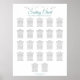 Faites de votre réception de mariage une belle avec ce tableau de sièges. Conçu dans le cadre de notre Turquoise & Grey Elegant Wedding Suite, il présente un design simple et élégant avec du texte turquoise ou turquoise & gris sur un arrière - plan blanc avec une bordure florale en faux feuille argent. Ce graphique montre les affectations de table afin que vos invités aient un temps facile à trouver la bonne table.