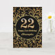 22e Anniversaire Carte d'Anniversaire Florale Noir et Or. Pour plus de personnalisation, cliquez sur le bouton "Customiser" et utilisez notre outil de conception pour modifier ce modèle.