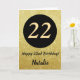 22e Joyeuse Carte de Parties scintillant Noir et Or Anniversaire avec nom personnalisé. Pour plus de personnalisation, cliquez sur le bouton "Customiser" et utilisez notre outil de conception pour modifier ce modèle.
