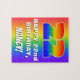 This fun and vibrant birthday-themed jigsaw puzzle design features a large number “22” having a colourful rainbow spectrum inspired gradient pattern. It also features the message “HAPPY 22nd BIRTHDAY,”, and a personalized recipient name. The background also features a joyful multicolored rainbow spectrum inspired gradient pattern. An exciting, personalized birthday puzzle like this might be given in celebration of somebody’s twenty-second birthday. [~Z0000569]