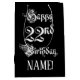 This opulent and lavish birthday-themed gift bag design features the message “Happy 22nd Birthday,” in formal script style text, on a black coloured background. It also features a custom recipient name. An elaborate gift bag like this might be used when giving a gift or present in honour of somebody’s 22nd birthday. [~Z0000557]