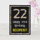 22nd Birthday: Floral Flowers Number, Custom Name Card