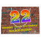 This vibrant and colourful birthday themed gift bag design, inspired by graffiti and street art, features a large number "22" with a rainbow spectrum gradient inspired pattern, along with the message "Happy 22nd Birthday,", and a custom name. It also has a brick wall inspired pattern background. A fun gift-bag like this might be used when wrapping presents being given to somebody in celebration of their twenty second birthday. [~Z0000522]