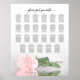 Ce tableau de 23 sièges mariages de table présente une magnifique image d'une rose rose rose rousse à longue tige allongée sur son côté réfléchissant dans l'eau avec des vagues et des ondulations. Le titre dit "s'il vous plaît trouvez votre table" dans la calligraphie de script dentée. Il y a de la place pour les noms des couples et la date du mariage. Ce tableau a des affectations de table pour 230 invités 10 personnes par table.