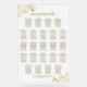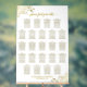 Cette belle carte de 23 places est conçue sur un panneau acrylique flexible. Il présente une conception élégante et glamour avec de la calligraphie en écriture or et des boucles et des tourbillons en fausse feuille dorée dans les coins. L'arrière - plan blanc est partiellement opaque, mais la lumière brillera derrière le panneau, ce qui lui donne une belle lueur. Peut accueillir jusqu'à 230 personnes avec 10 places par table. Une façon merveilleuse d'ajouter élégance et style à votre réception de mariage tout en facilitant la recherche de sièges par vos invités.