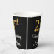 This stylish, sophisticated, and elegant birthday themed paper cup design features a large ordinal number “23rd” having a faux/imitation gold-like look, along with the birthday greeting message “Happy 23rd Birthday,” and a customizable name in a script-style font. It also has a black-coloured background. Sophisticated paper cups like this might be fun to use at a birthday party being held for somebody who is celebrating their twenty third birthday. [~Z0000538]