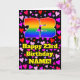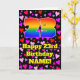 The front of this fun and happy birthday themed greeting card design features a large number “23” having a rainbow spectrum gradient inspired pattern. It also features the message “Happy 23rd Birthday,”, and a custom name. The background of the front features a pattern of red, purple, and pink heart shapes. The inside has a personalized birthday greeting message, or could perhaps be cleared and left blank if a message is to be written by hand instead. A happy, editable birthday greeting card like this might be sent to celebrate somebody’s twenty-third birthday. [~Z0000551]