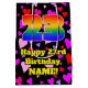 This joyful and colourful birthday-themed giftbag design features a large number “23” having a rainbow spectrum gradient inspired pattern. It also features the message “Happy 23rd Birthday,”, and a personalized name. The background features a pattern of red, purple, and pink heart shapes. A birthday themed gift bag like this might be a fun way to wrap a gift or present being given to celebrate somebody’s twenty third birthday. [~Z0000551]