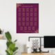 This beautiful wedding seating chart is simple yet elegant. It features a beautiful design of gold text on a magenta or cassis purple background with lacy gold faux foil floral filigree in the corners. It includes table assignments for 240 guests with 10 guests per table.