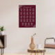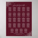 This beautiful wedding seating chart is simple yet elegant. It features a beautiful design of light gray text on a burgundy or maroon background with lacy silver faux foil floral filigree in the corners. It includes table assignments for 240 guests with 10 guests per table.