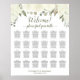 Ce beau tableau de 24 places mariage présente un design floral chic boho peint à la main, avec des roses, des fleurs et des fleurs dans les tons ivoire, blanc et crème, ainsi que des feuilles d'eucalyptus vert sauge et du feuillage de jardin. Le titre dit : "Bienvenue ! s'il vous plaît trouvez votre table" dans la calligraphie de script dentée. Il y a de la place pour les noms du couple et la date du mariage. Ce tableau a des affectations de table pour 240 invités avec 10 sièges par table.