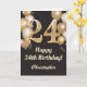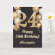 24th Birthday Black and Gold Balloons Confetti Card