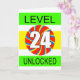 24th birthday card for a video gamer. Any computer gamer will love this card. With the slogan Level 24 Unlocked, this is sure to get a big grin from anyone who loves playing computer games.