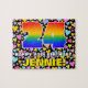 This eye-catching and colourful birthday jigsaw puzzle design features a large number “24” having a multicolored rainbow spectrum inspired gradient pattern. It also features the message “HAPPY 24th BIRTHDAY,”, and a personalized recipient name. The background features a joyful pattern of loving heart shapes with various sizes and colours. A vibrant, personalized birthday puzzle like this might be a fun way to send birthday greetings to somebody who is celebrating their twenty-fourth birthday. [~Z0000611]